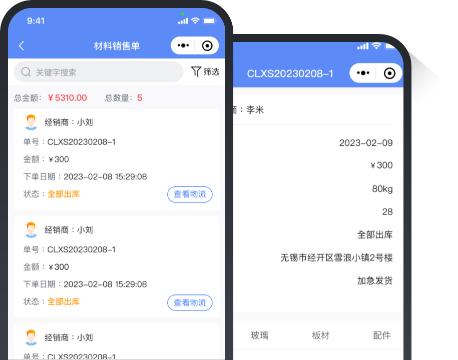 随时查看材料销售状态、明细